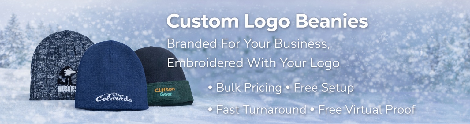 100% Acrylic. One Size Fits Most.Your logo or imprint embroidered up to 7 thread colors and 7,000 stitches.Additional stitches and/or colors are subject to extra charges.Click DESIGN NOW to instantly create your beanies.Need our help? Click FREE VIRTUAL ..